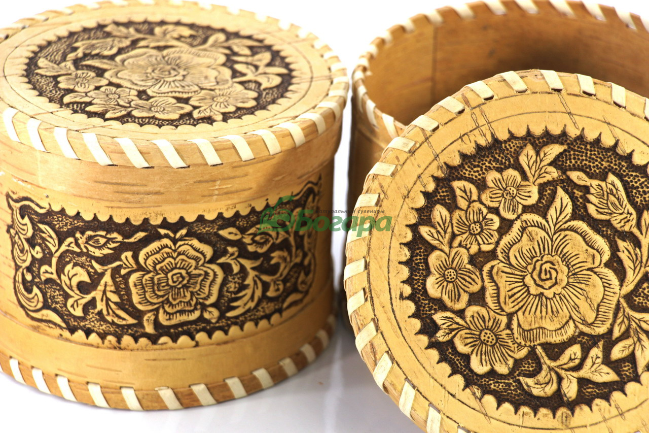 Берестяная шкатулка великолепно подойдет для хранения мелкой утвари, а также колец, серёжек и другой бижутерии из-за своей бархатистой поверхности.
