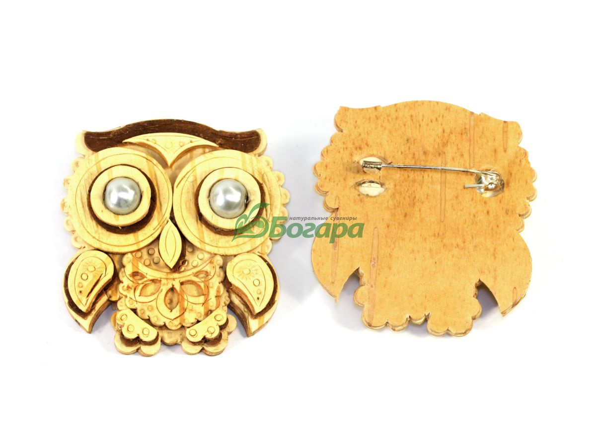 Брошь Совушка 7 см ручная резьба
